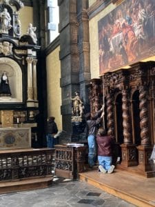 Cet atelier, proposé dans le cadre du cours de conservation du patrimoine de Mathieu Piavaux, avait pour objectif de sensibiliser les étudiants aux enjeux liés à la conservation du patrimoine religieux.